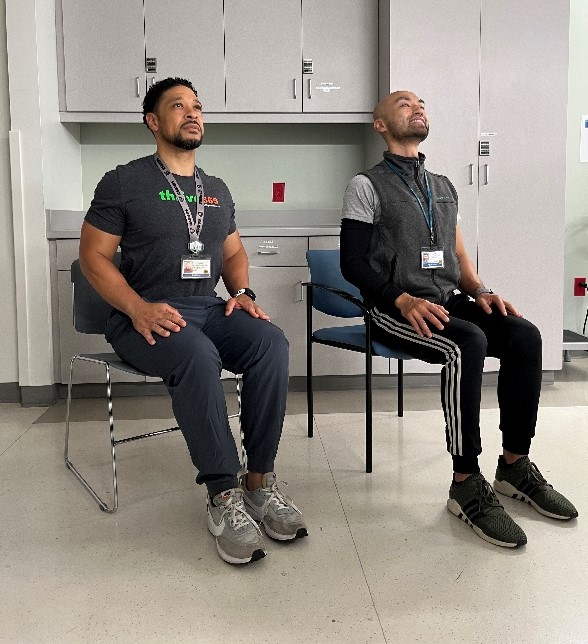 Brandon Madrid, Imaging Technician Aide, will demonstrate this month’s exercises. Brandon has been with Kaiser Permanente for 17 years, and one of the things he enjoys most is serving as the Fitness Champion for his department. He loves having the opportunity to help his coworkers reach their fitness goals and to encourage them to keep moving and stay motivated.